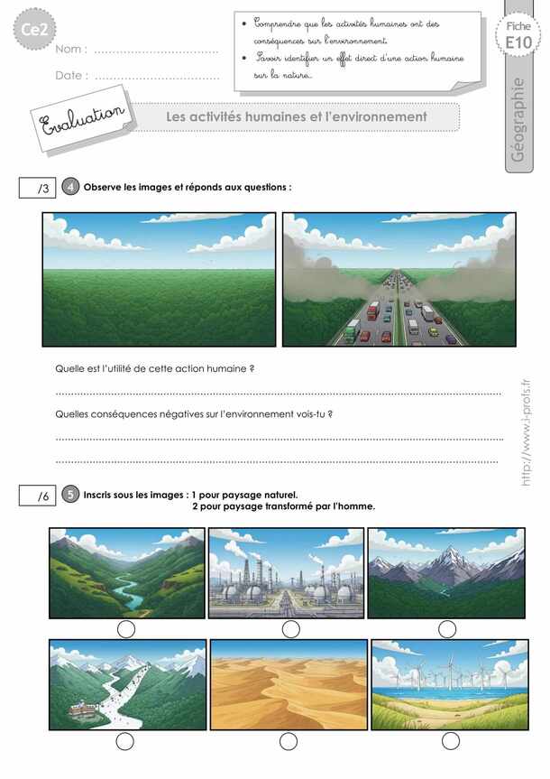 EVALUATION Géographie CE2 Les activités de l'homme et l'environnement
