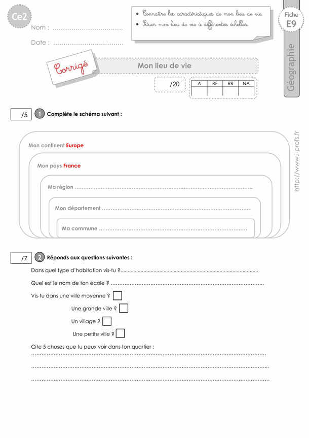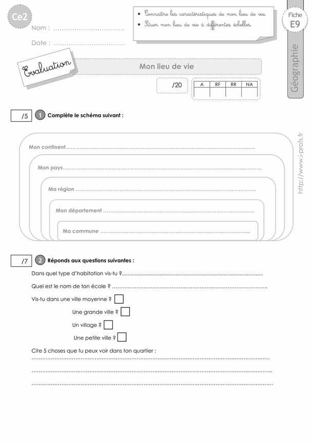 EVALUATION Géographie CE2 Mon lieu de vie