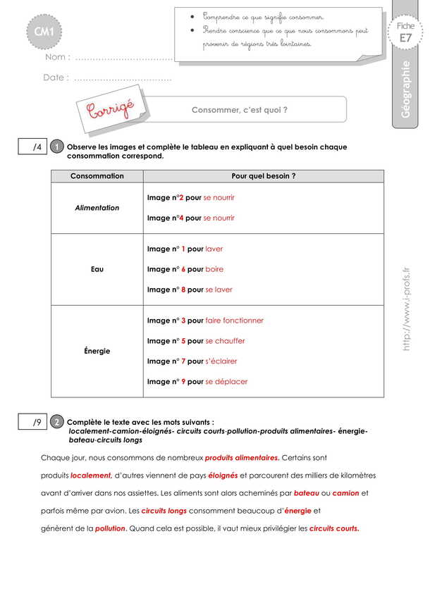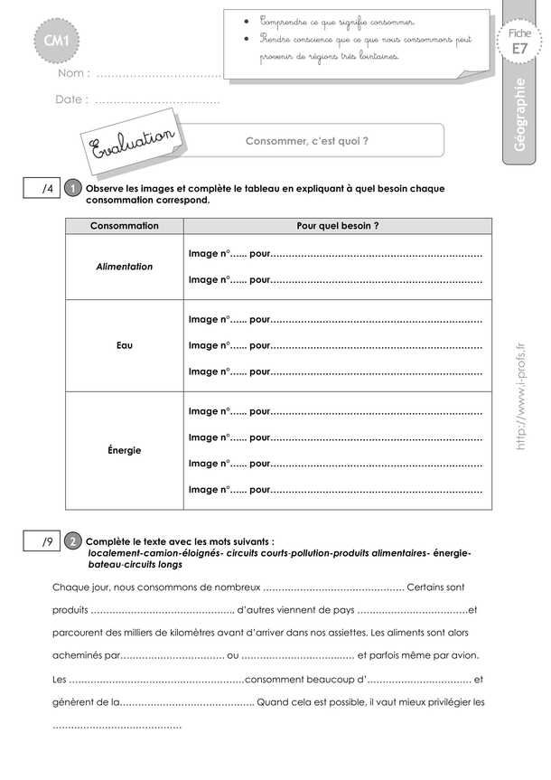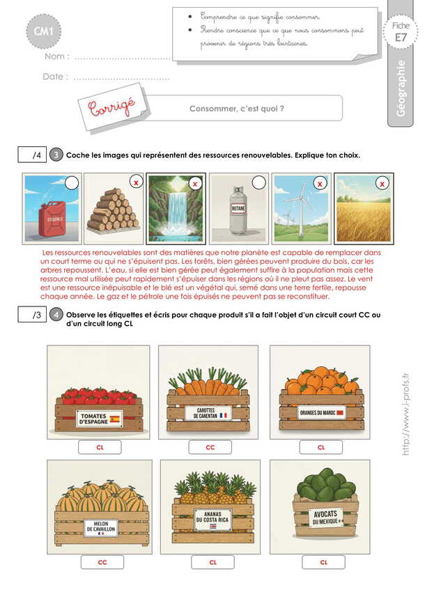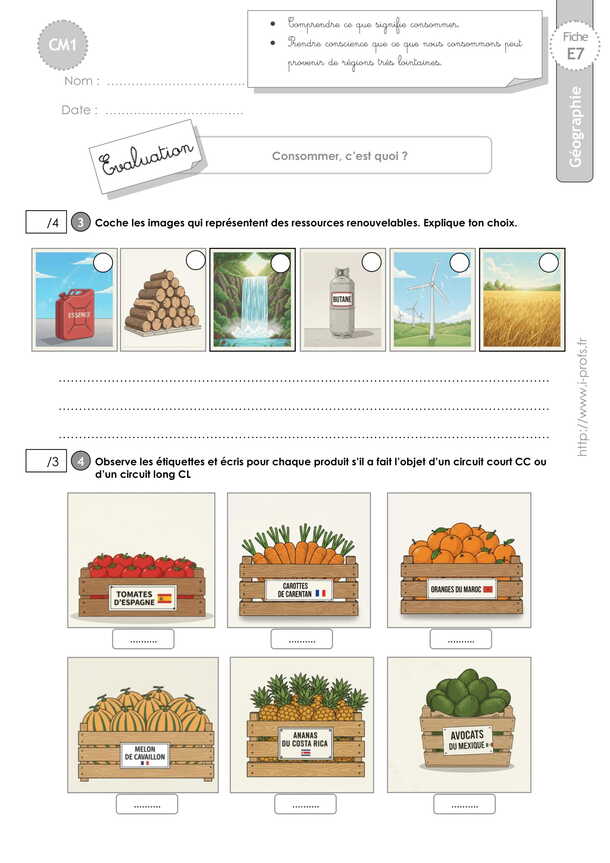 Géographie CM1 EVALUATION: Consommer