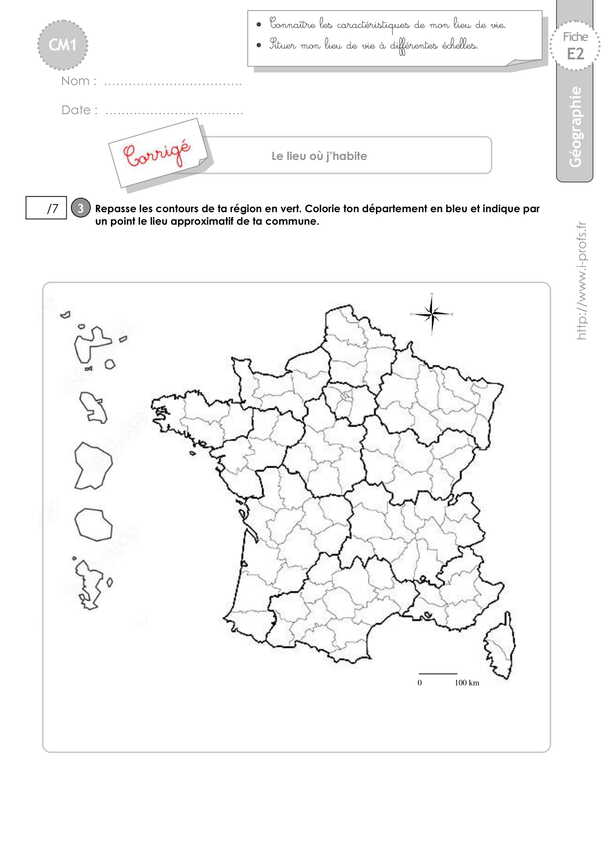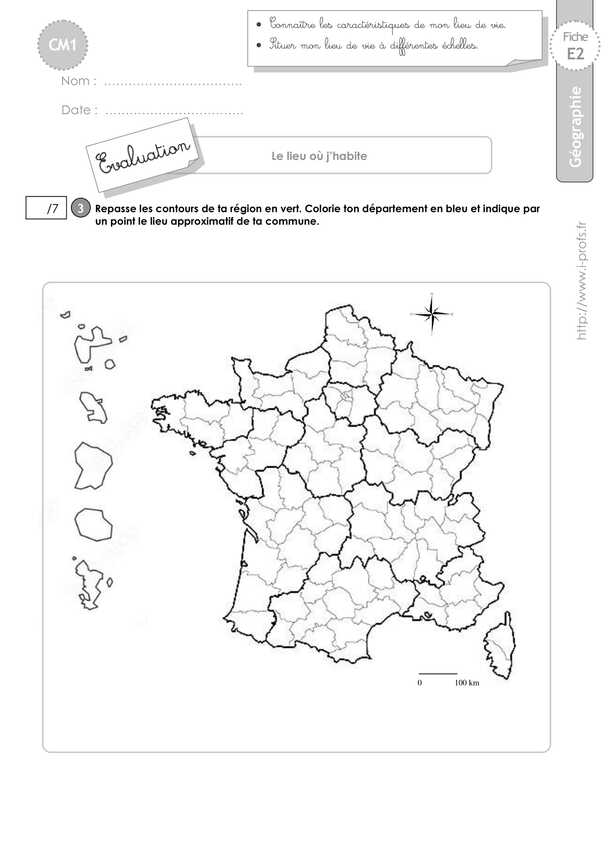 Géographie CM1 EVALUATION: Mon lieu de vie
