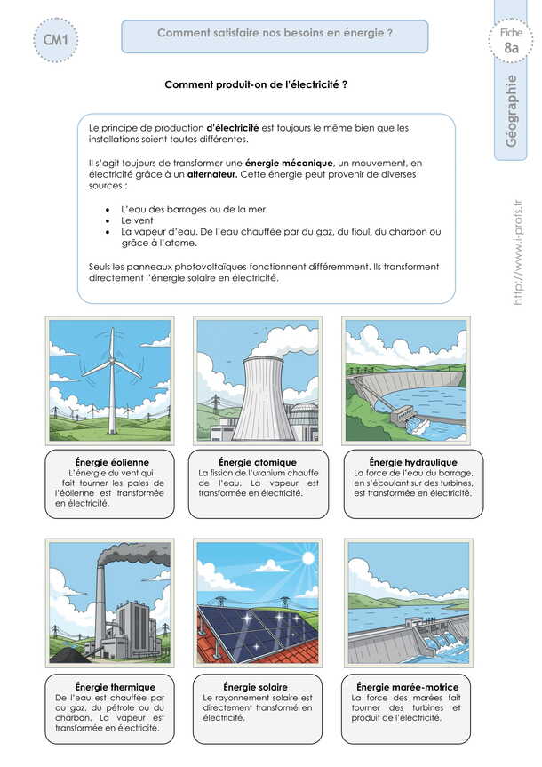 Géographie CM1 DOCUMENTS: Satisfaire besoins en énergies