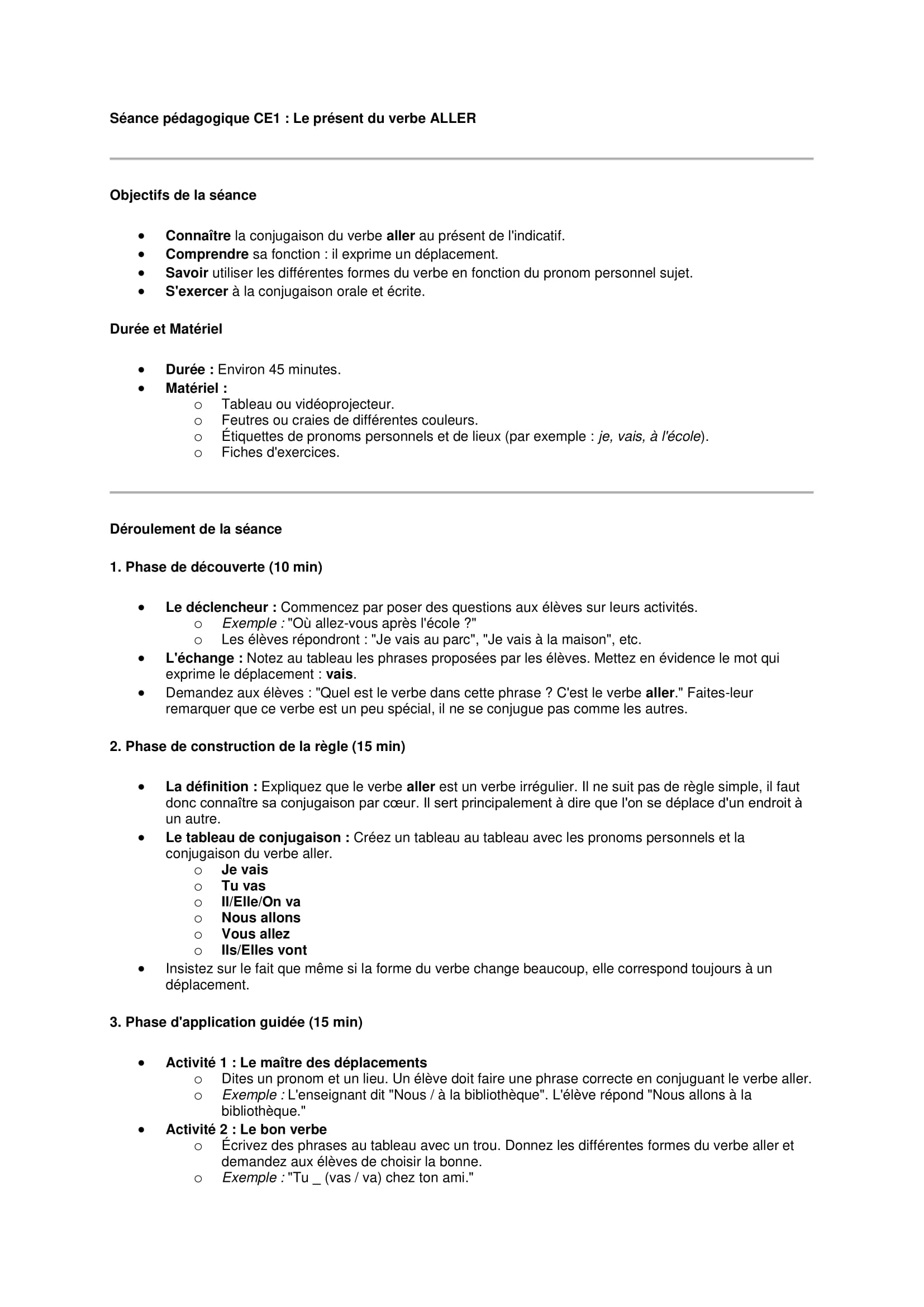 Séances pédagogiques conjugaison Le présent du verbe aller CE1