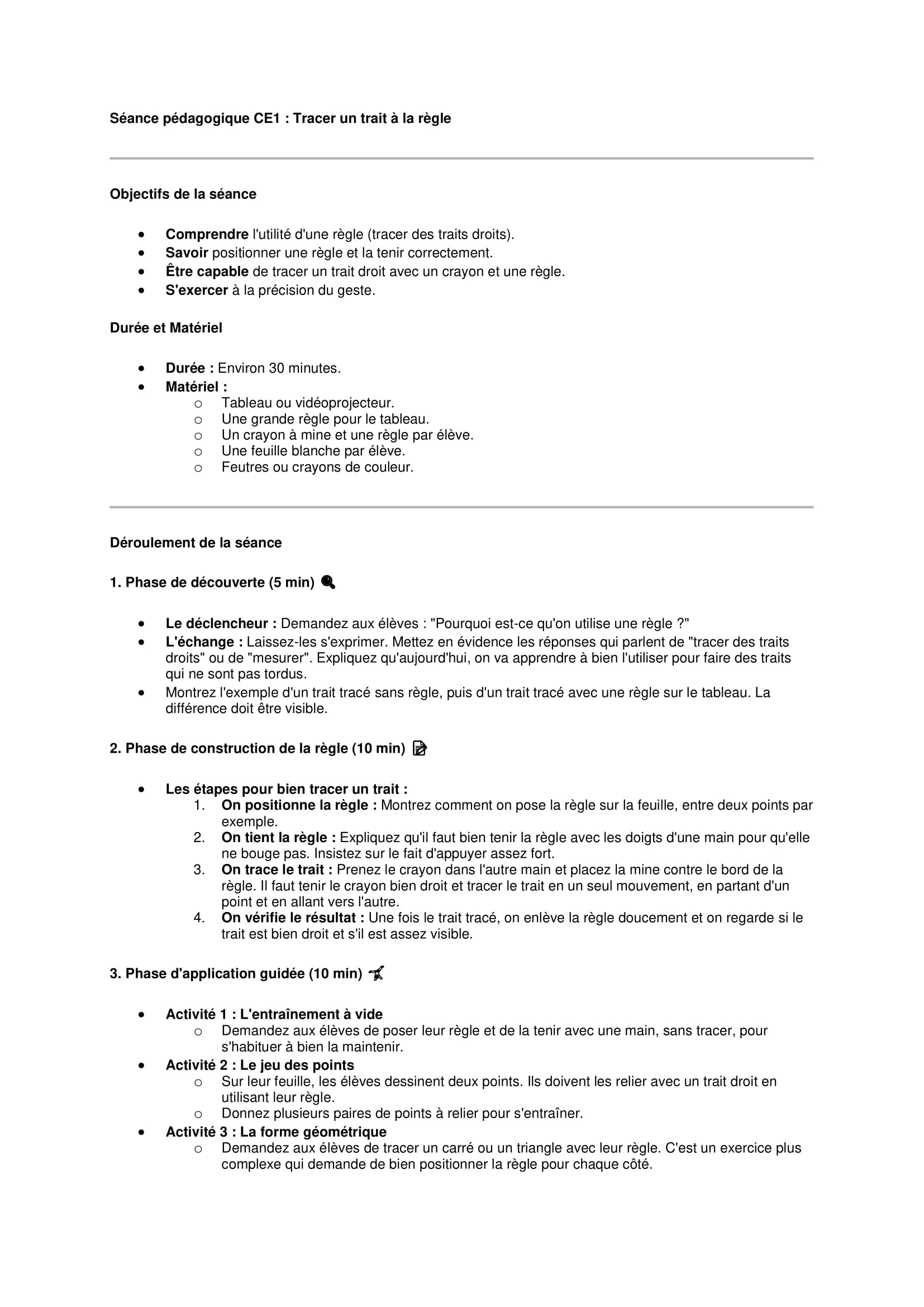 Séances pédagogiques géométrie tracer un trait à la règle CE1