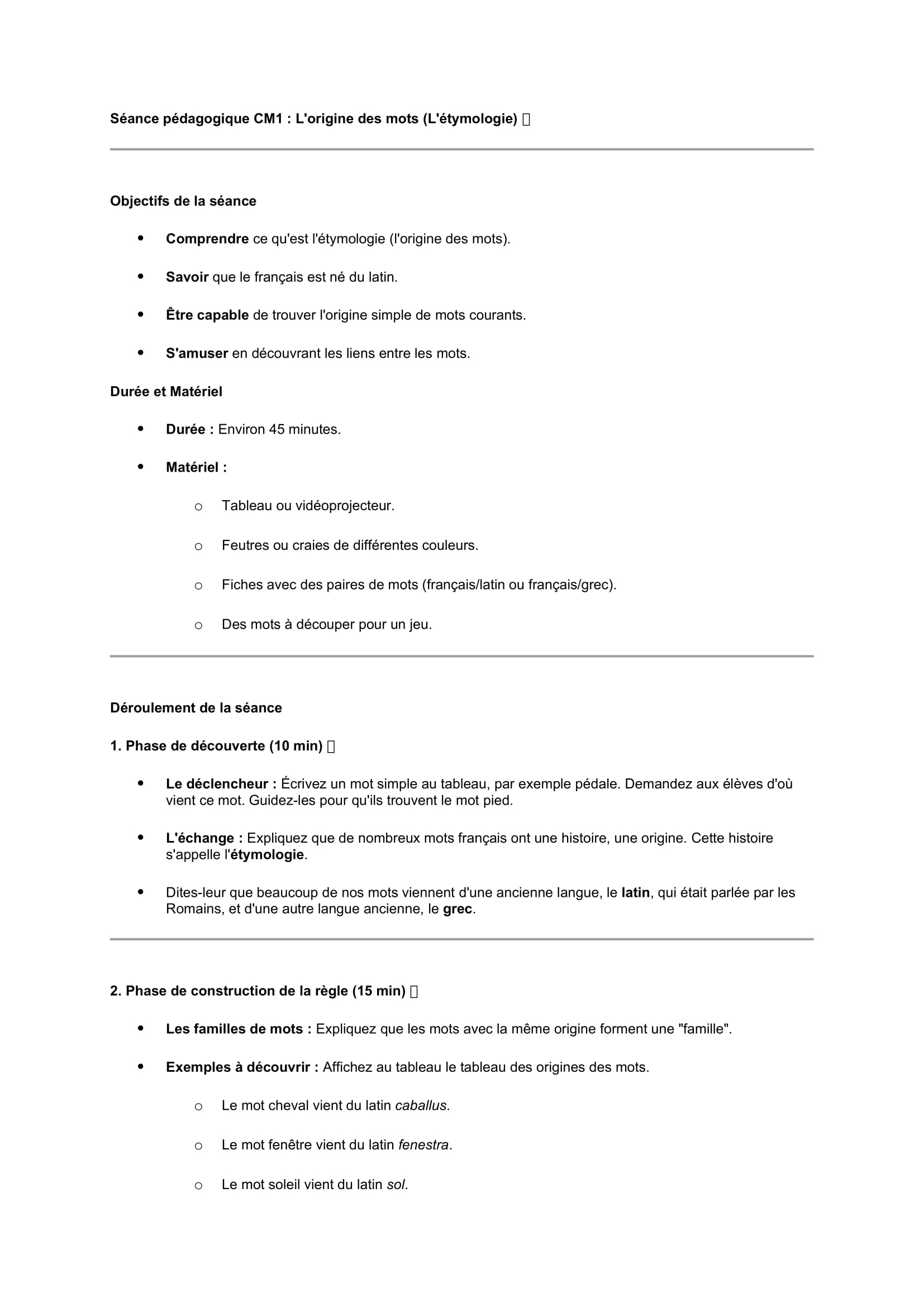 Séances pédagogiques CM1: l'origine des mots