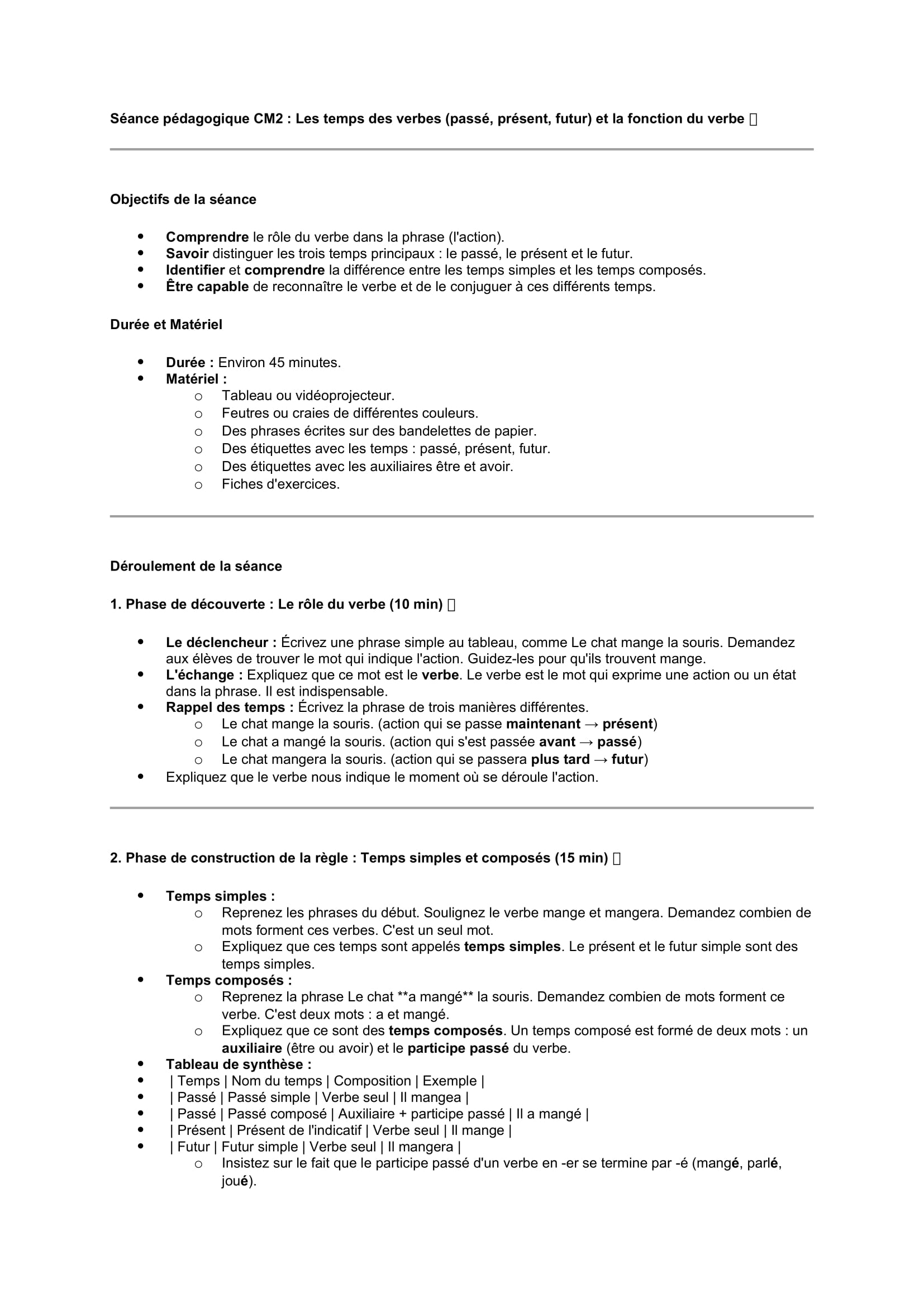 Séances pédagogiques CM2 Présent, passé, futur