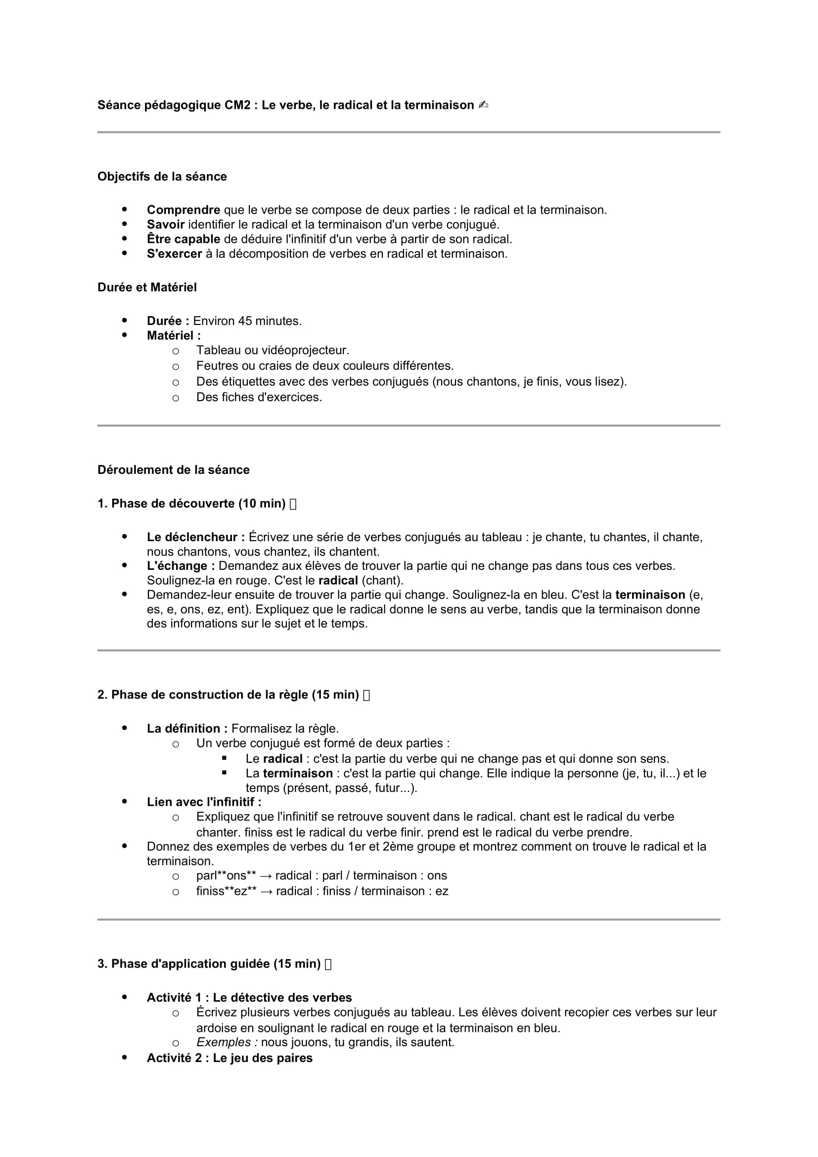 Séances pédagogiques CM2 Le verbe radical et terminaison