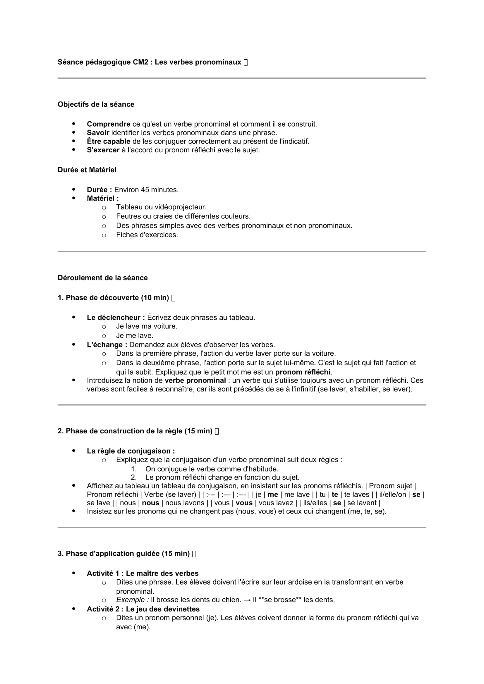 Séances pédagogiques CM2 Les verbes pronominaux