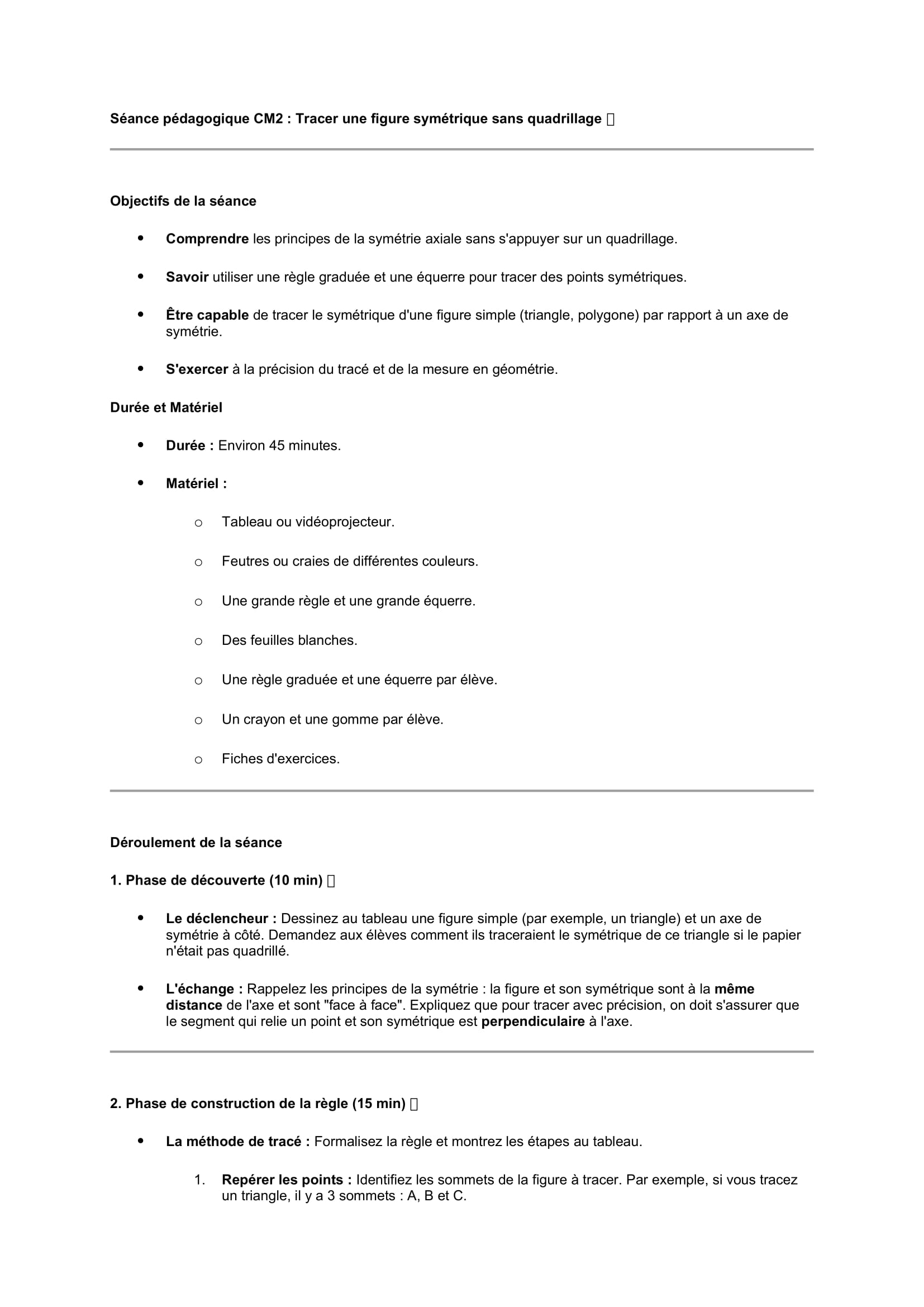 Séances pédagogiques CM2 Tracer une figure symétrique sans quadrillage