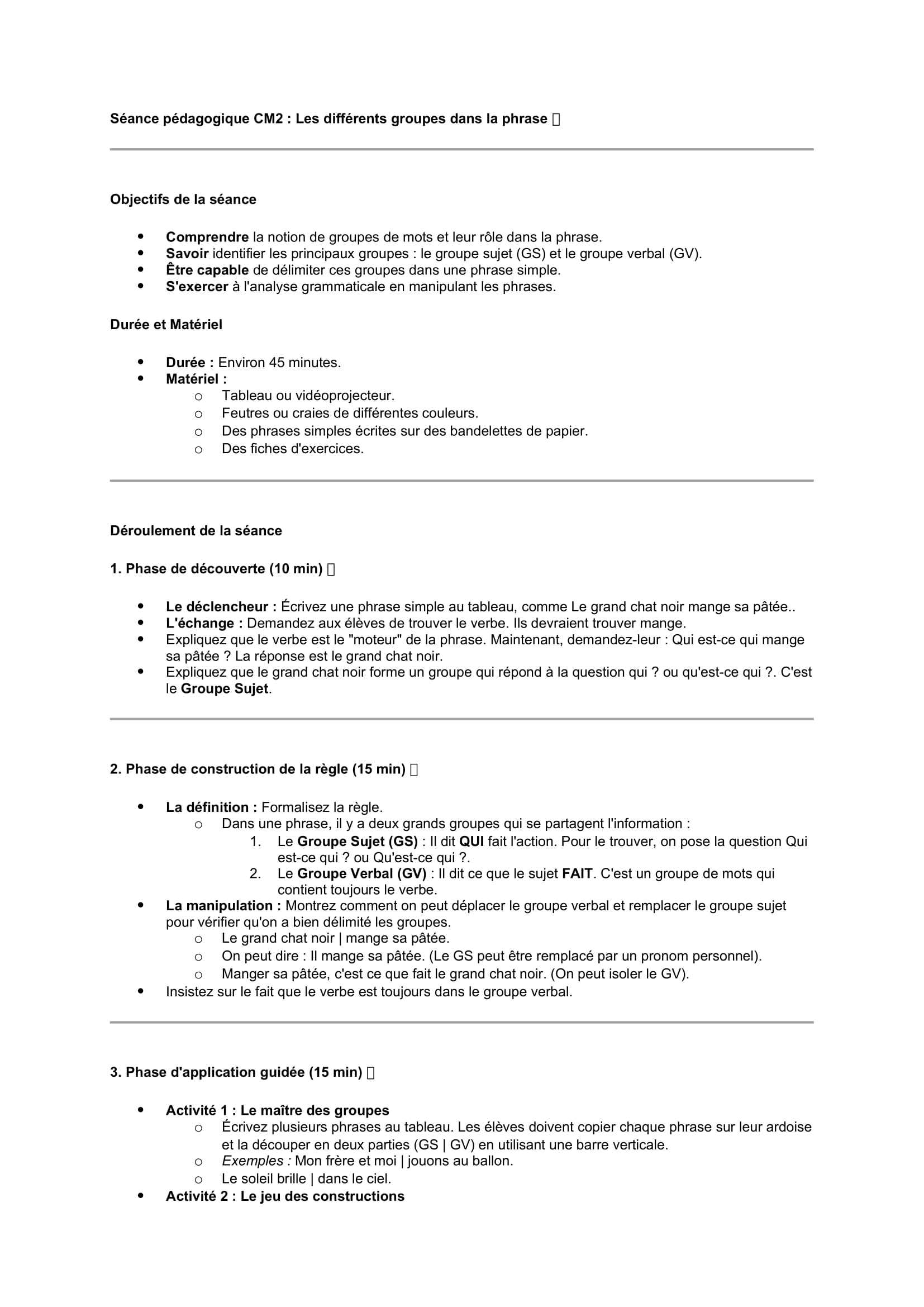 Séances pédagogiques CM2 Les groupes dans la phrase