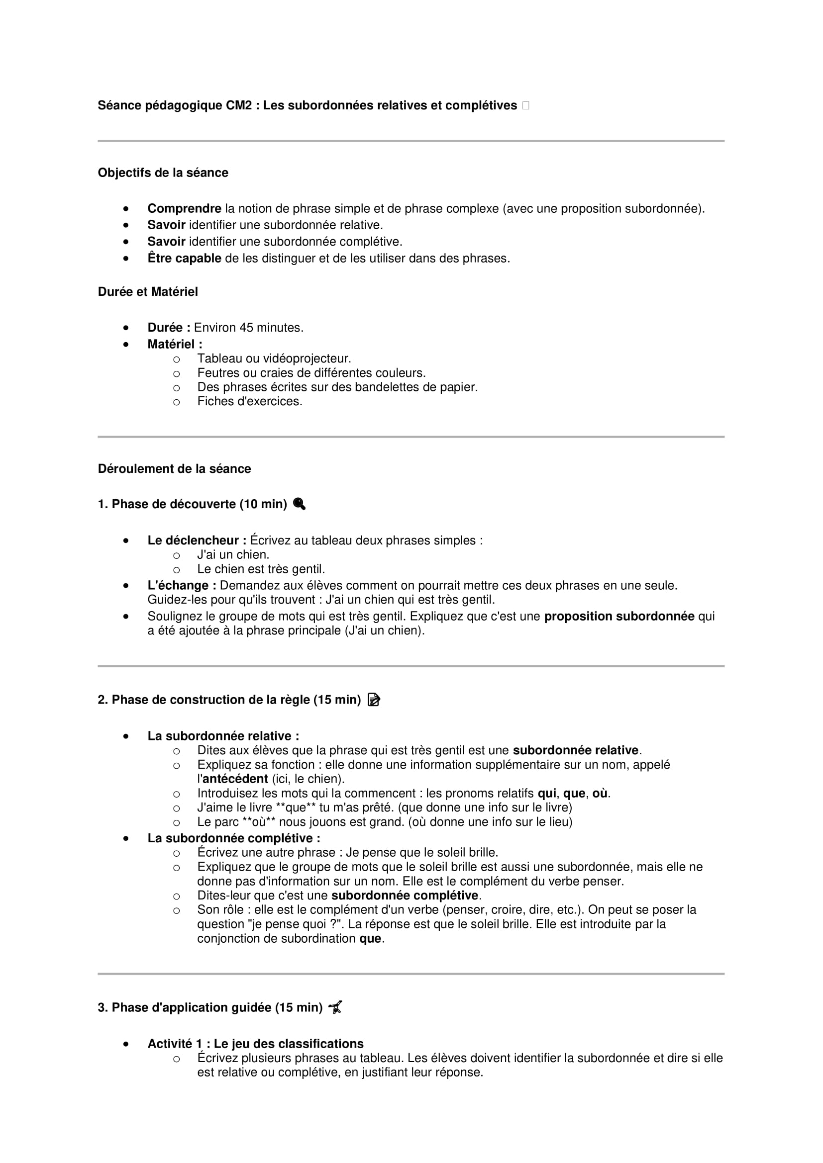 Séances pédagogiques CM2 La subordonnée relative et supplétive