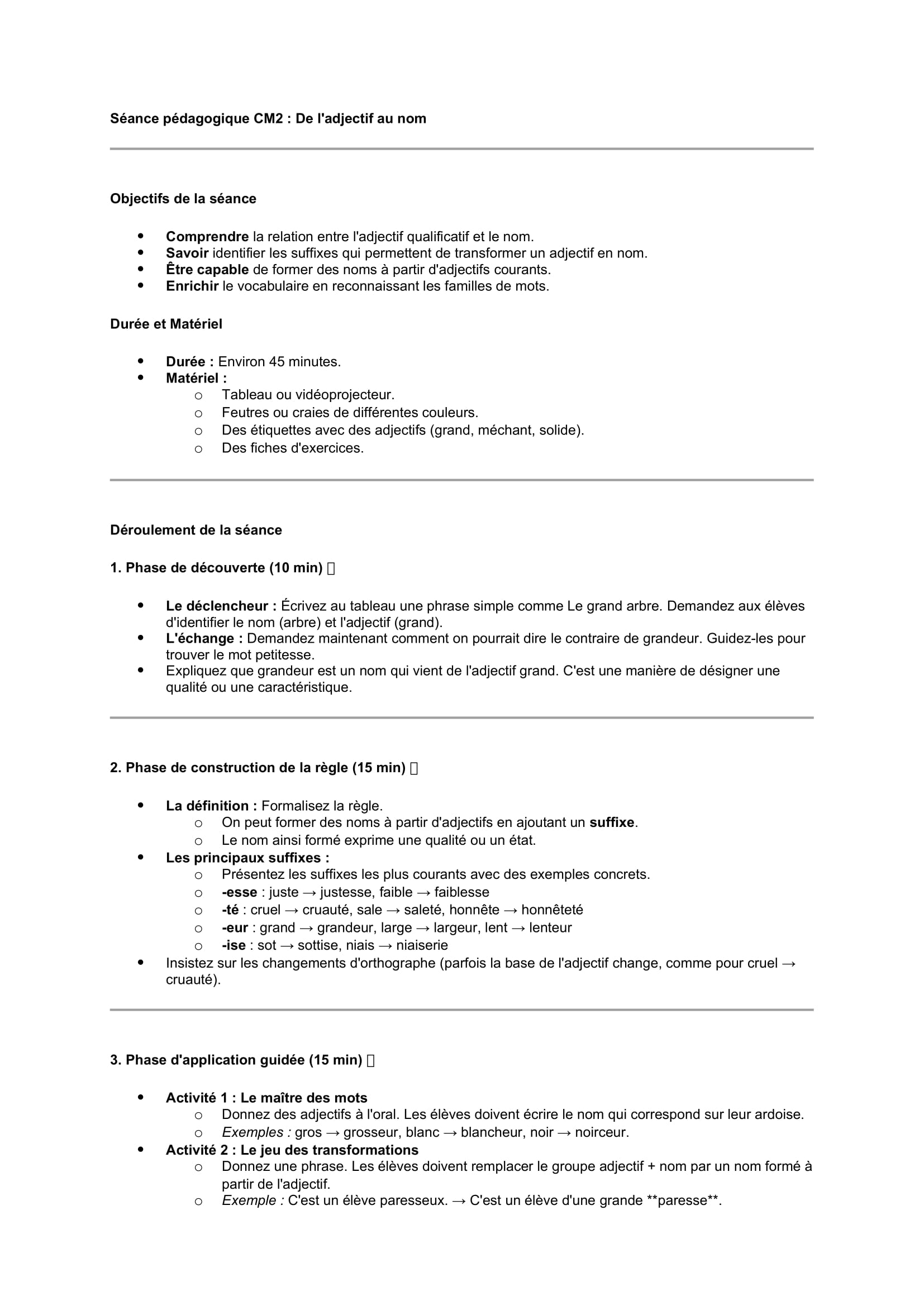 Séances pédagogiques CM2 De l’adjectif au nom