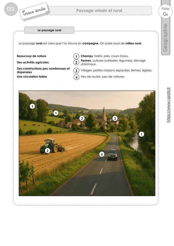 LEÇON Géographie CE2 paysages urbains et ruraux