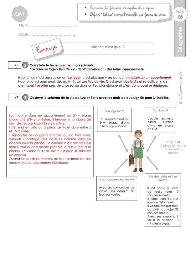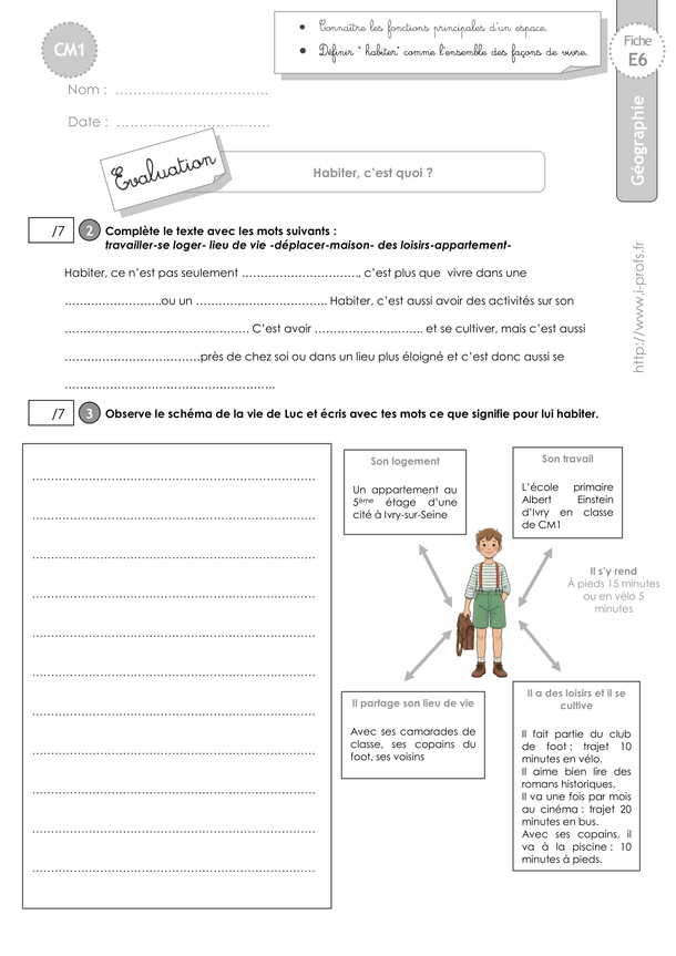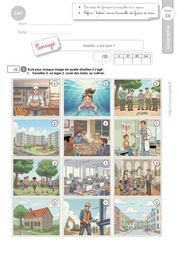 Géographie CM1 EVALUATION: Que signifie "habiter"
