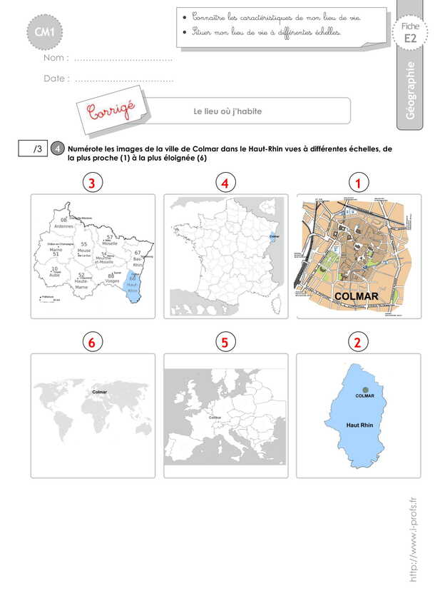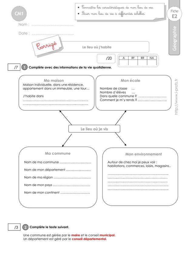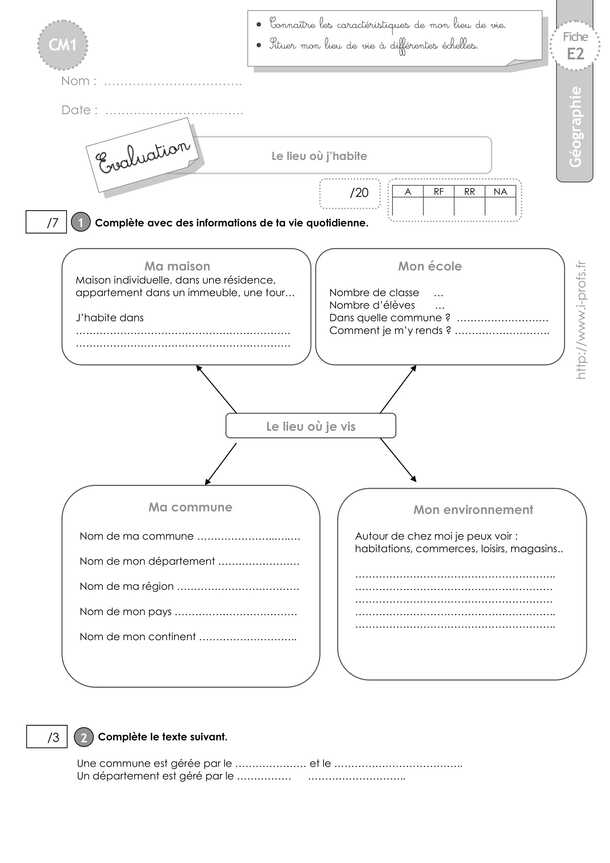 Géographie CM1 EVALUATION: Mon lieu de vie
