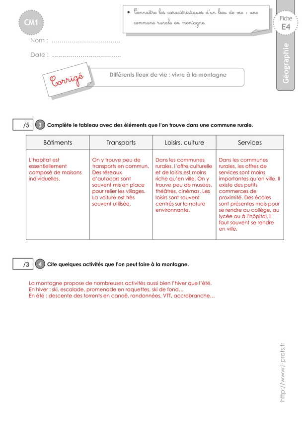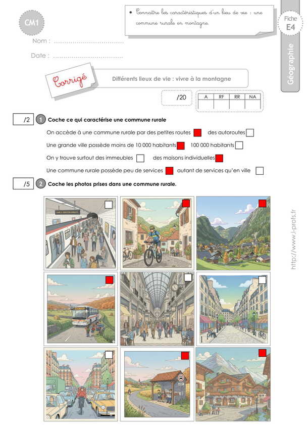 Géographie CM1 EVALUATION: Vivre dans une commune rurale