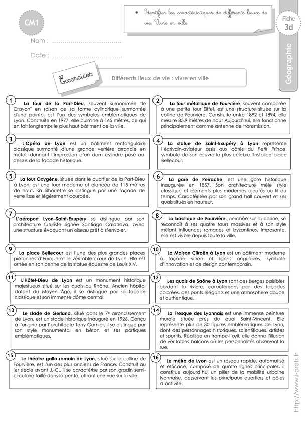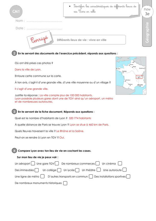 CM1 EXERCICES: Vivre dans une commune urbaine