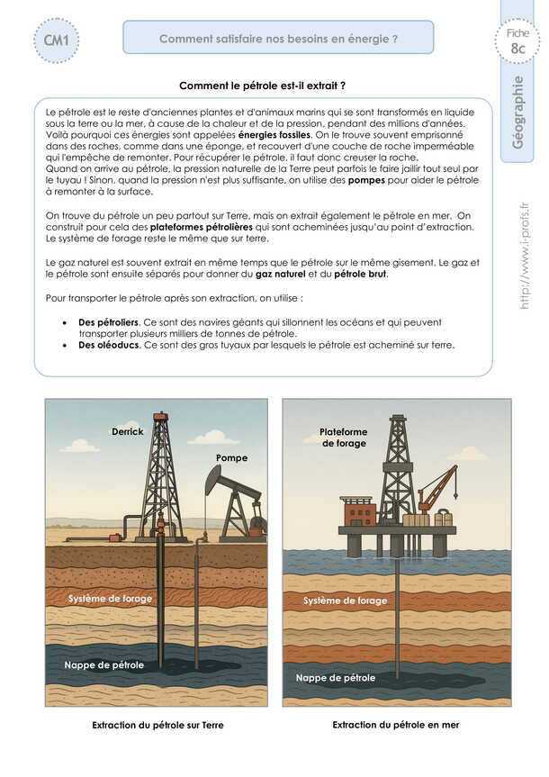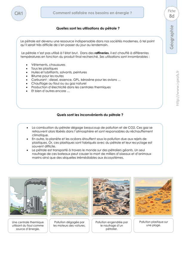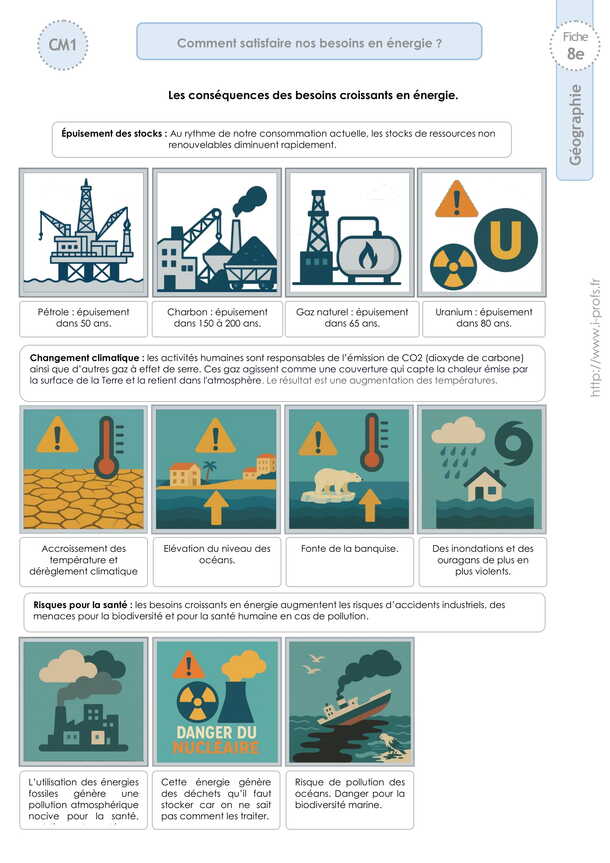 Géographie CM1 DOCUMENTS: Satisfaire besoins en énergies