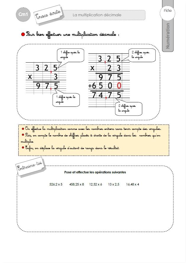 Trace écrite Cm1: La multiplication decimale