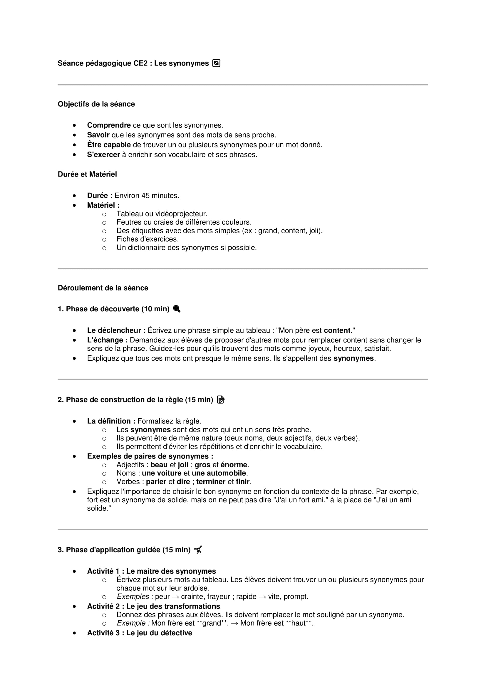 Séances pédagogiques CE2: Les synonymes