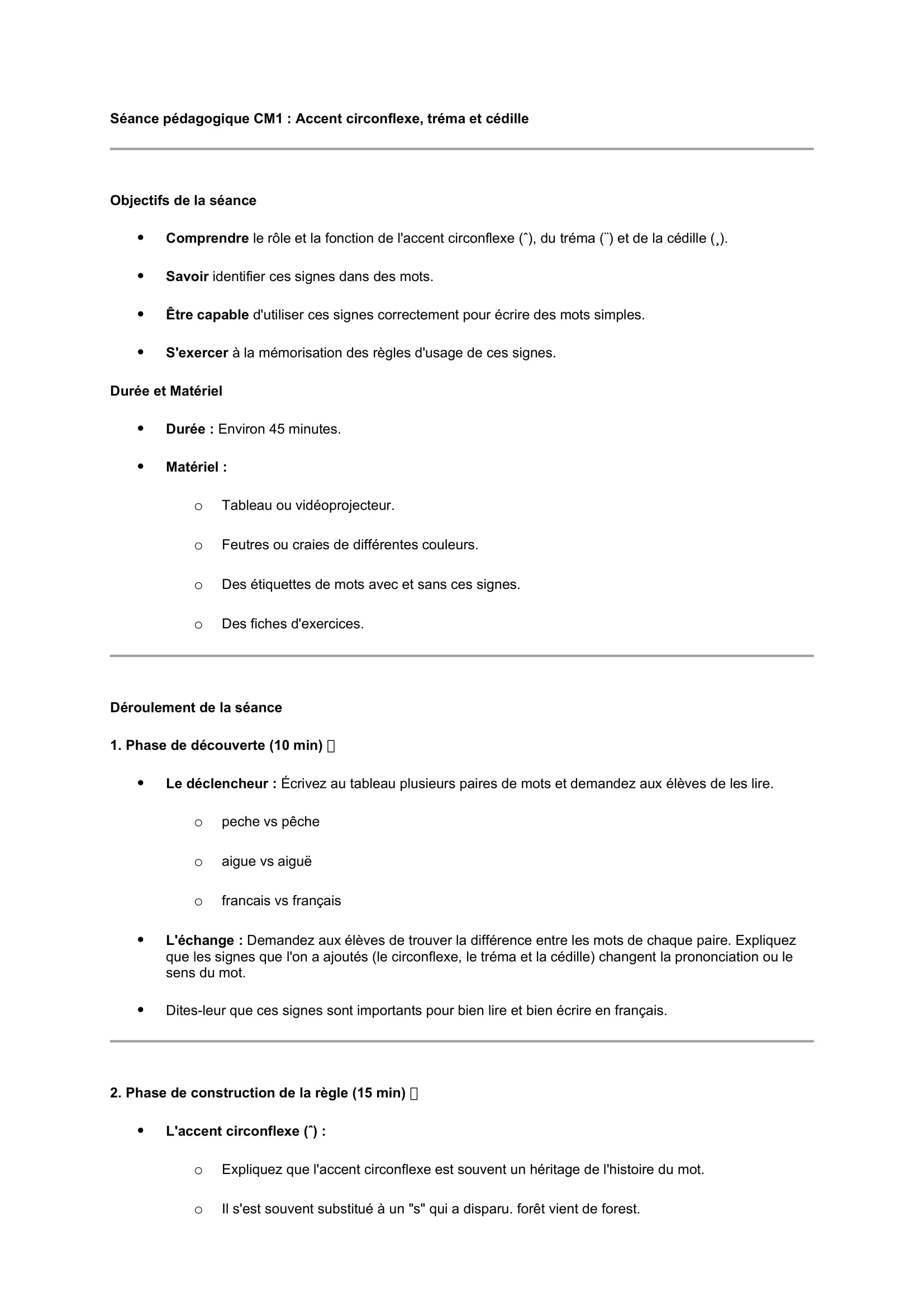 Séances pédagogiques CM1: accent circonflexe tréma cédille