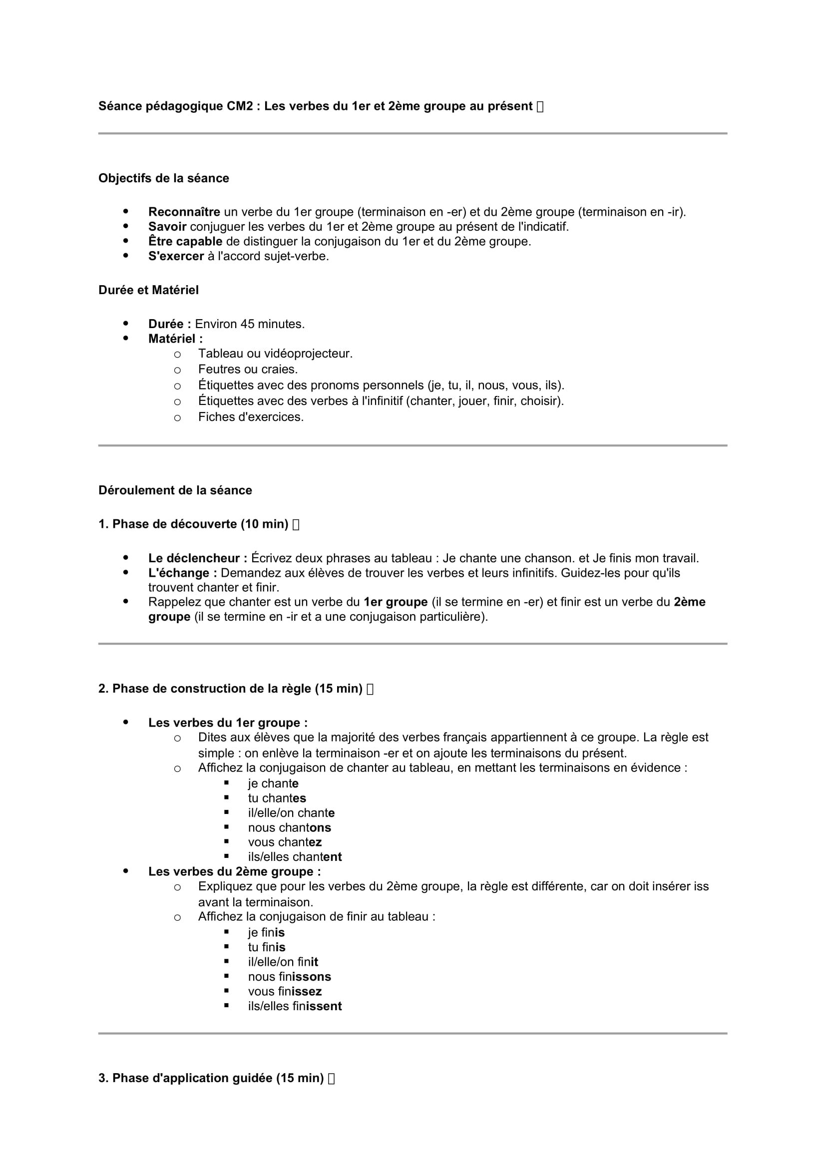 Séances pédagogiques CM2 Verbes du 1er et 2ème groupe au présent