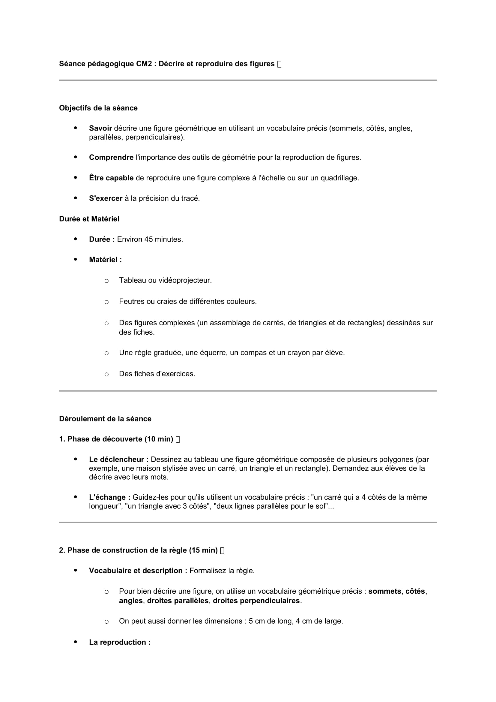 Séances pédagogiques CM2 Décrire et reproduire des figures