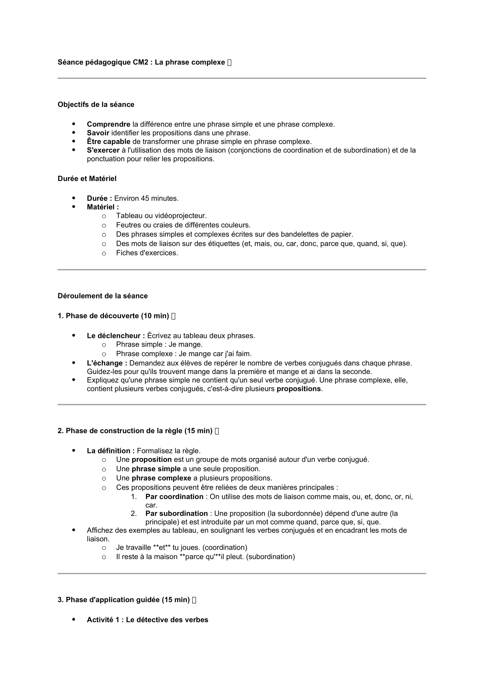 Séances pédagogiques CM2 La phrase complexe