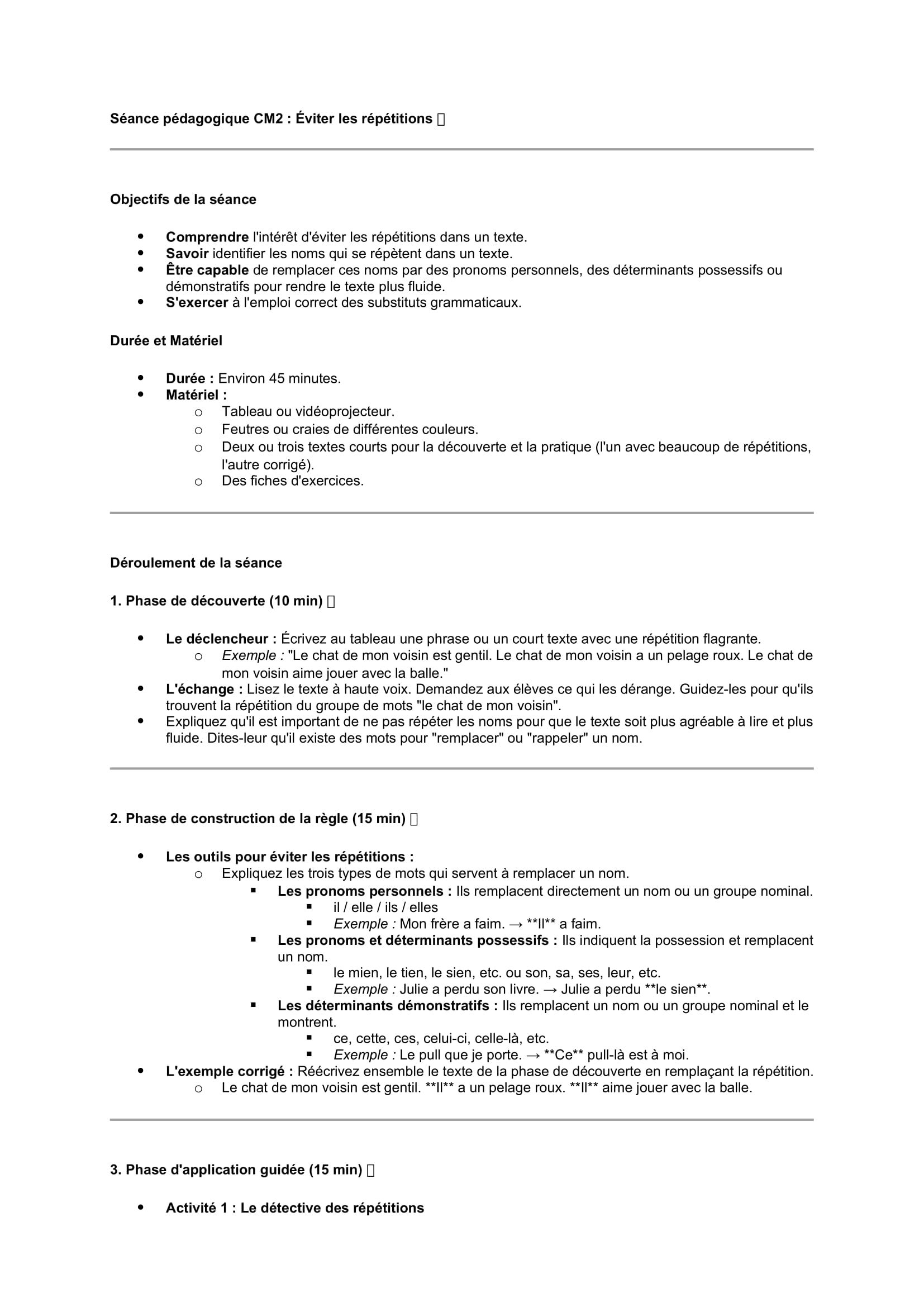 Séances pédagogiques CM2 Le rappel du nom par un pronom
