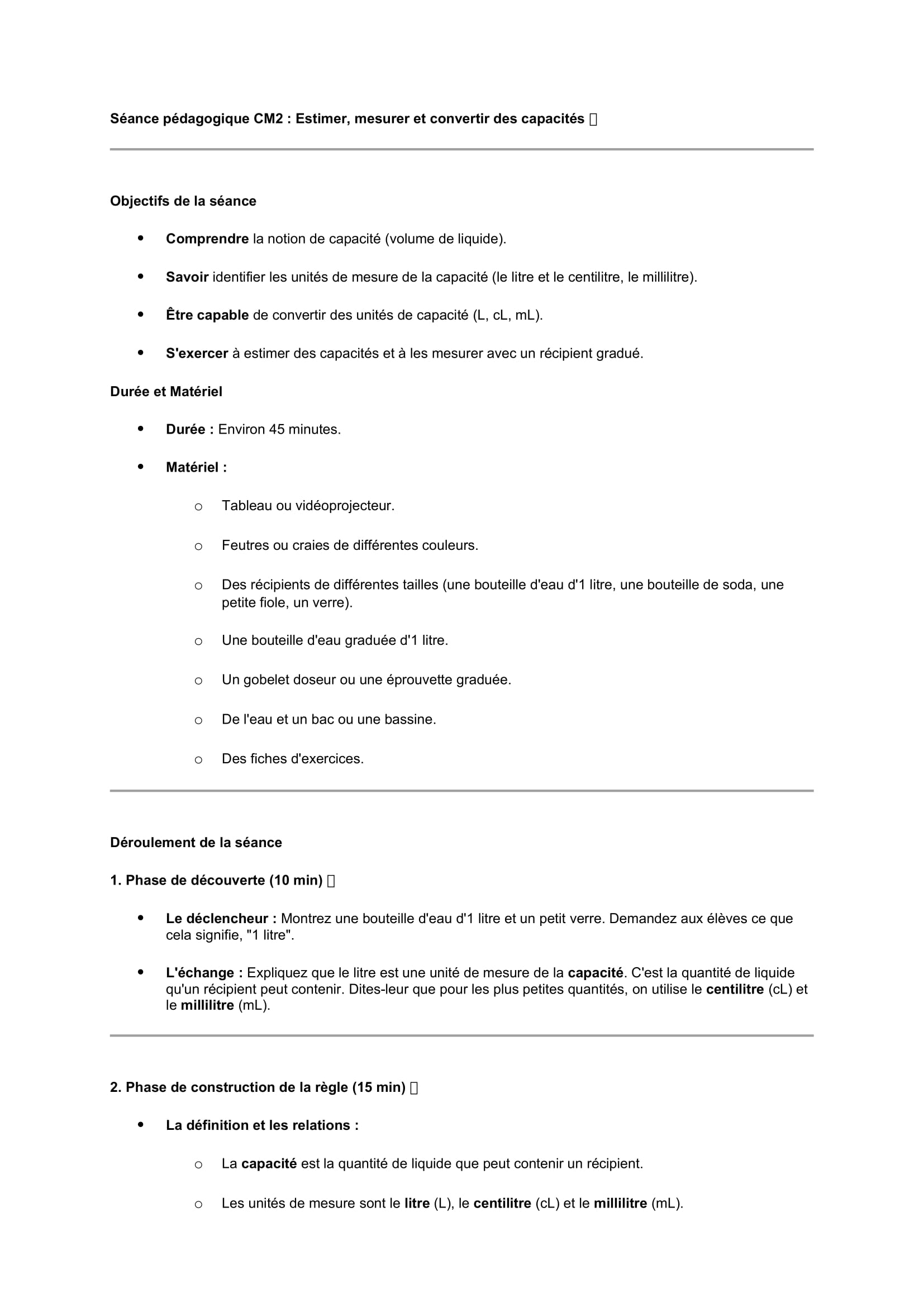 Séances pédagogiques CM2 Mesures de capacité-estimer